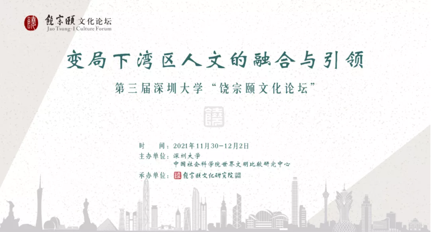 From November 30 to December 1, 2021, the "Integration and Leadership of Humanities in the Greater Bay Area under the Changing Landscape" - the 3rd Jao Tsung - I Culture Forum was held in Shenzhen. This forum was jointly organized by Shenzhen University and the Center for Comparative Studies of World Civilizations of the Chinese Academy of Social Sciences, and hosted by the Jao Tsung - I Institute of Culture. This forum was held in a hybrid format of online and offline participation due to the pandemic's impact. Over 70 experts and scholars from universities across mainland China, as well as representatives from cultural institutions and enterprises in the United States, France, Japan, and Hong Kong Special Administrative Region participated in the forum.