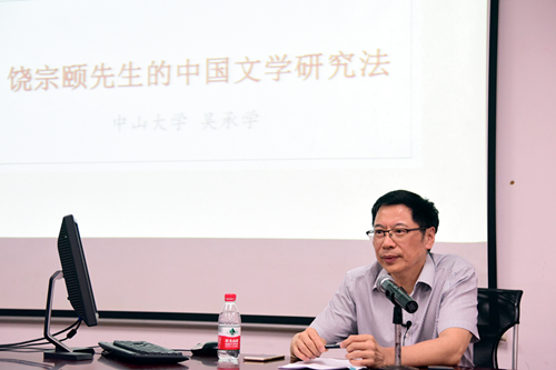吴承学教授从“何为经典”、“经典阐释与价值重估”开始,认为这是中国文化、中国文学的核心问题。历代文学经典的拣择标准是不同的,并且由于“价值观嬗变”、“影响的焦虑”等因素会导致经典价值的重估。吴承学教授以中国文化的社会历史变迁为线索,指出了经典重估的多种原因,如人生哲学、时代风气、道德观、文化风尚的变化,还有政治原因、西学东渐等等。总之,经典谱系的建立与变化可以说是社会价值观的集中反映。