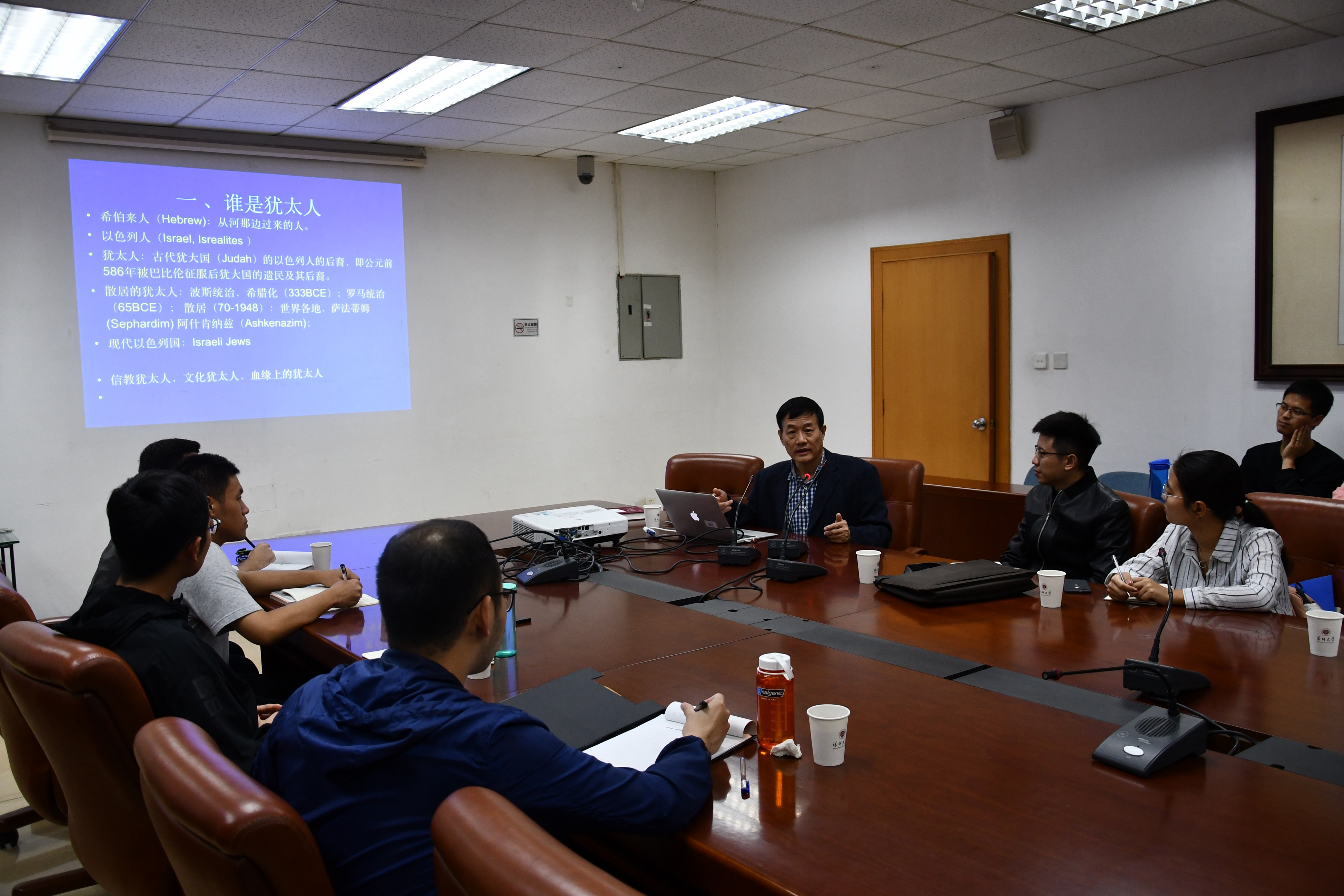 傅有德教授从“谁是犹太人”、“犹太人聪明吗”讲起,辨析了犹太民族的历史沿革,与基督徒的关联和区别,指出犹太人作为目前只有1300万人口的小民族,却在科学、思想、经济等领域有着优秀的成绩,这是与犹太精神密不可分的,可以从犹太人最根本的宗教信仰,以及生活习俗、历史变迁、思维方式等诸多方面找到原因,这就是“敬一神”、“行律法”、“守契约”、“求差异”、“要平等”、“尚学问”、“志坚忍”等犹太文化的特质。傅有德教授一一讲解这些要点,并与中国文化的相关部分,尤其是儒家思想进行对比,使在场师生对于犹太民族以宗教为底色的文化有了清晰而深入的理解。
